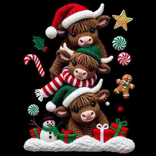 Faux Crochet 3 Highland Cows